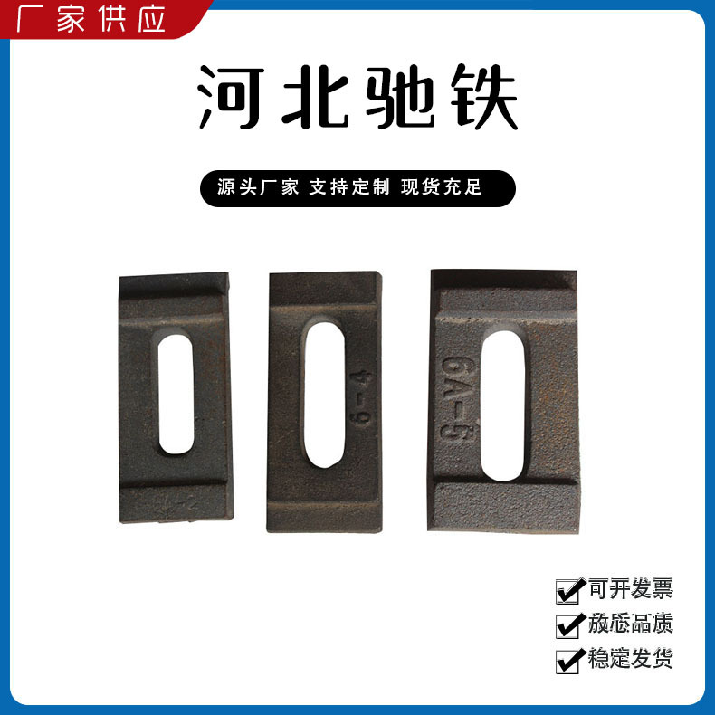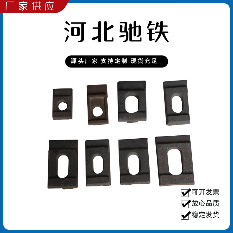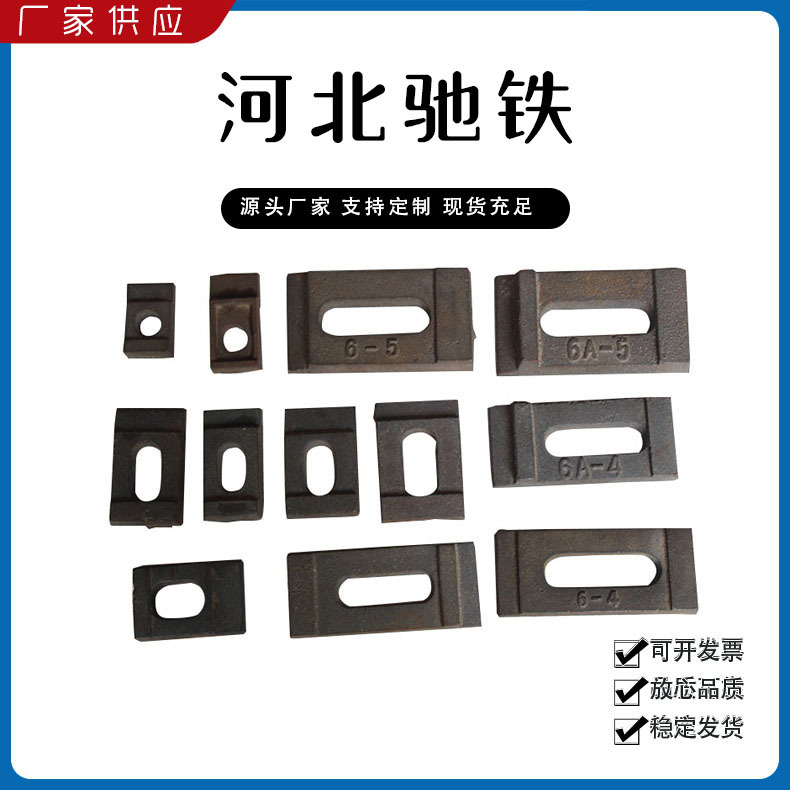 主要產(chǎn)品:鐵路配件、行車配件、工礦配件、魚(yú)尾板、道釘、壓軌器、軌道壓板、軌距拉桿、護(hù)軌扣板、T型螺栓、魚(yú)尾螺栓、彈條、軌距擋板